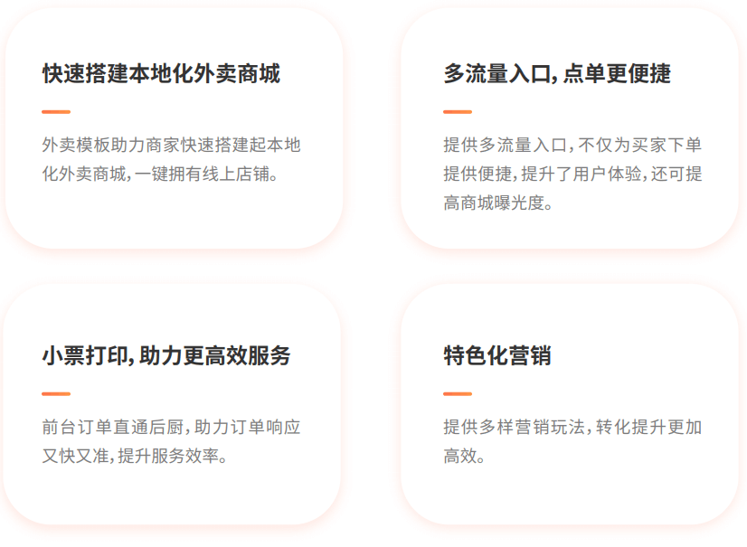 武陵云来客商城助力商家搭建属于自己的外卖平台,打通“点餐-支付-出票-配送”各个环节,帮助商家提升数 字化经营能力,实现效率、营收、用户体验全面提升,为客户提供“快、准、全”的外卖配送体验。